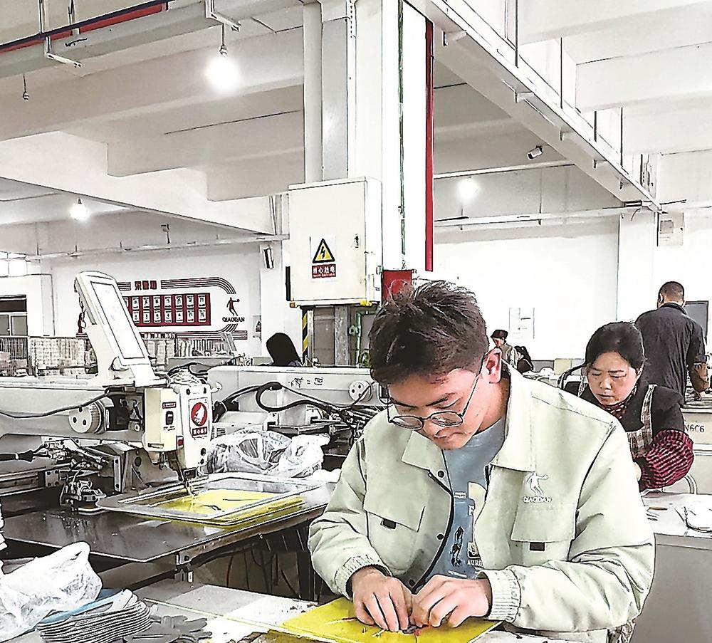 每天早上7点,汪后勇就在车间开启一天的工作。“我现在每天能完成800到1000双鞋的‘车后里’工作。平均到每双鞋,大概花上10秒至12秒。”汪后勇说,“这里实行计件工资。我每个月工资有六七千元呢!越干越有劲!”